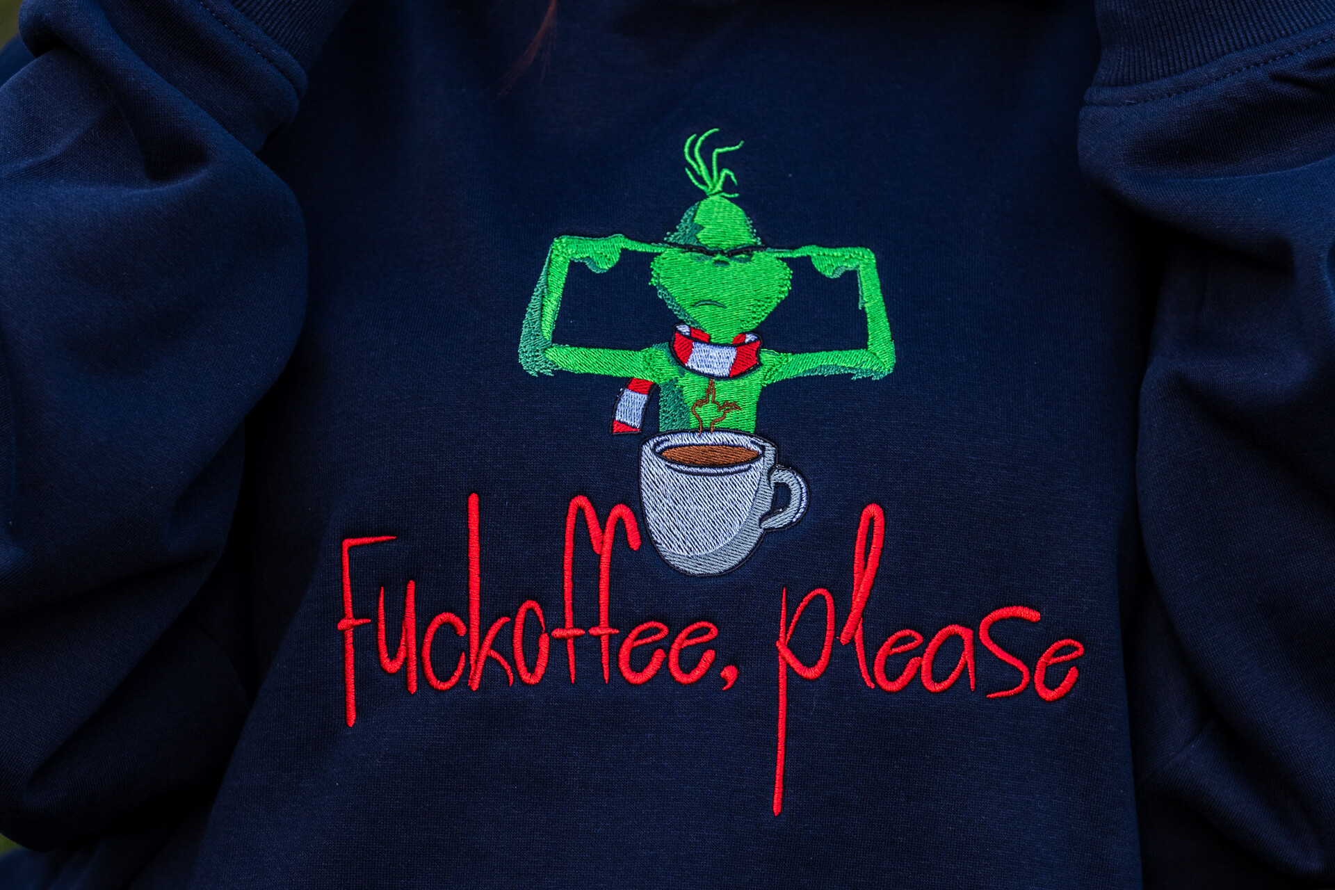 Haftowana świąteczna bluza typu crewneck z Grinchem to must have na wigilię firmową, rodzinną albo kiedy jesteś jeszcze przed poranną kawą, a ktoś już zawraca Ci głowę:)