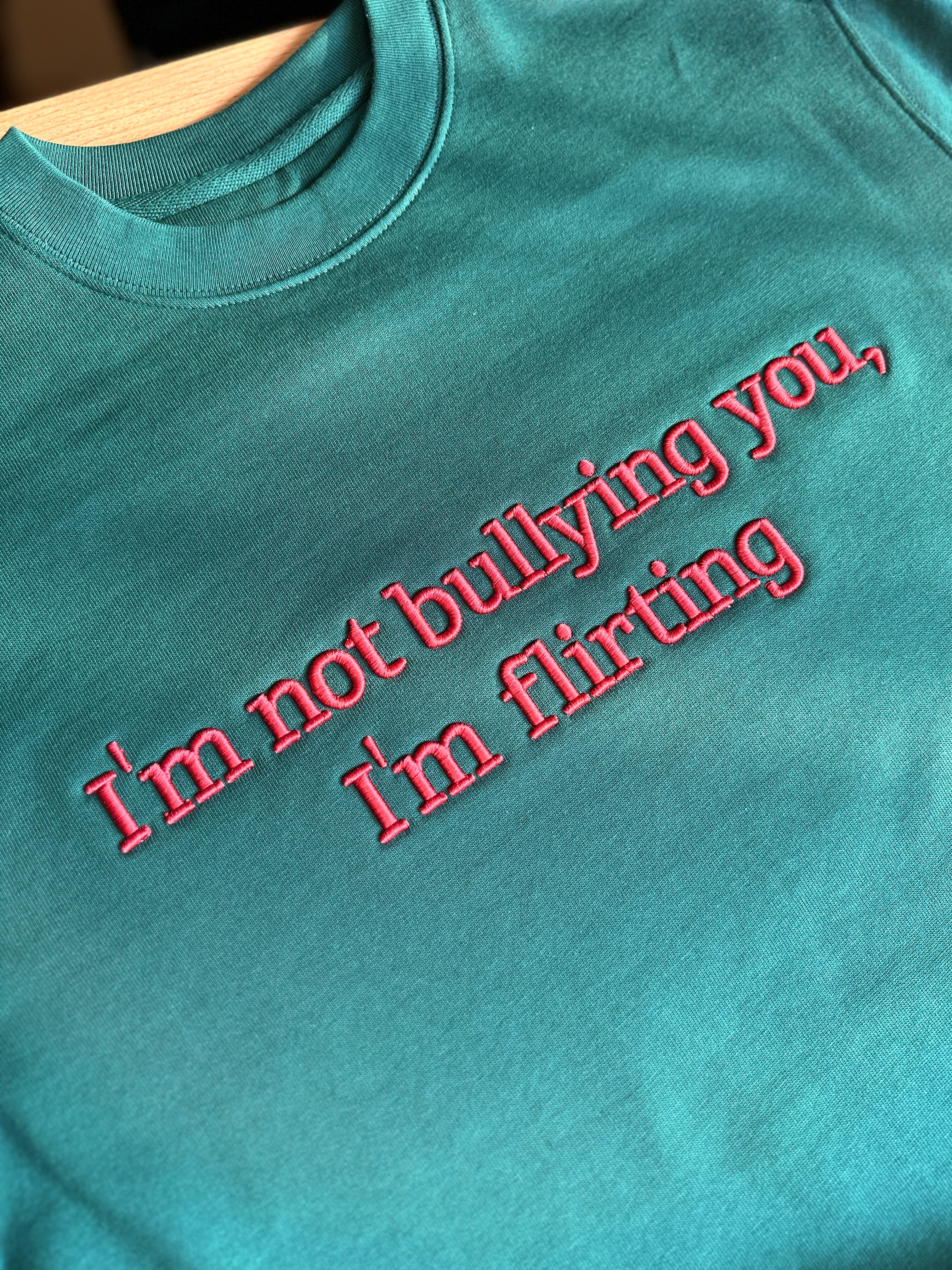 Bluza z haftem 3D haftem „I'm not bullying you, I'm flirting” – idealna na dni, kiedy chcesz kogoś kochać, ale wyłącznie przez obrażanie jego istnienia:)