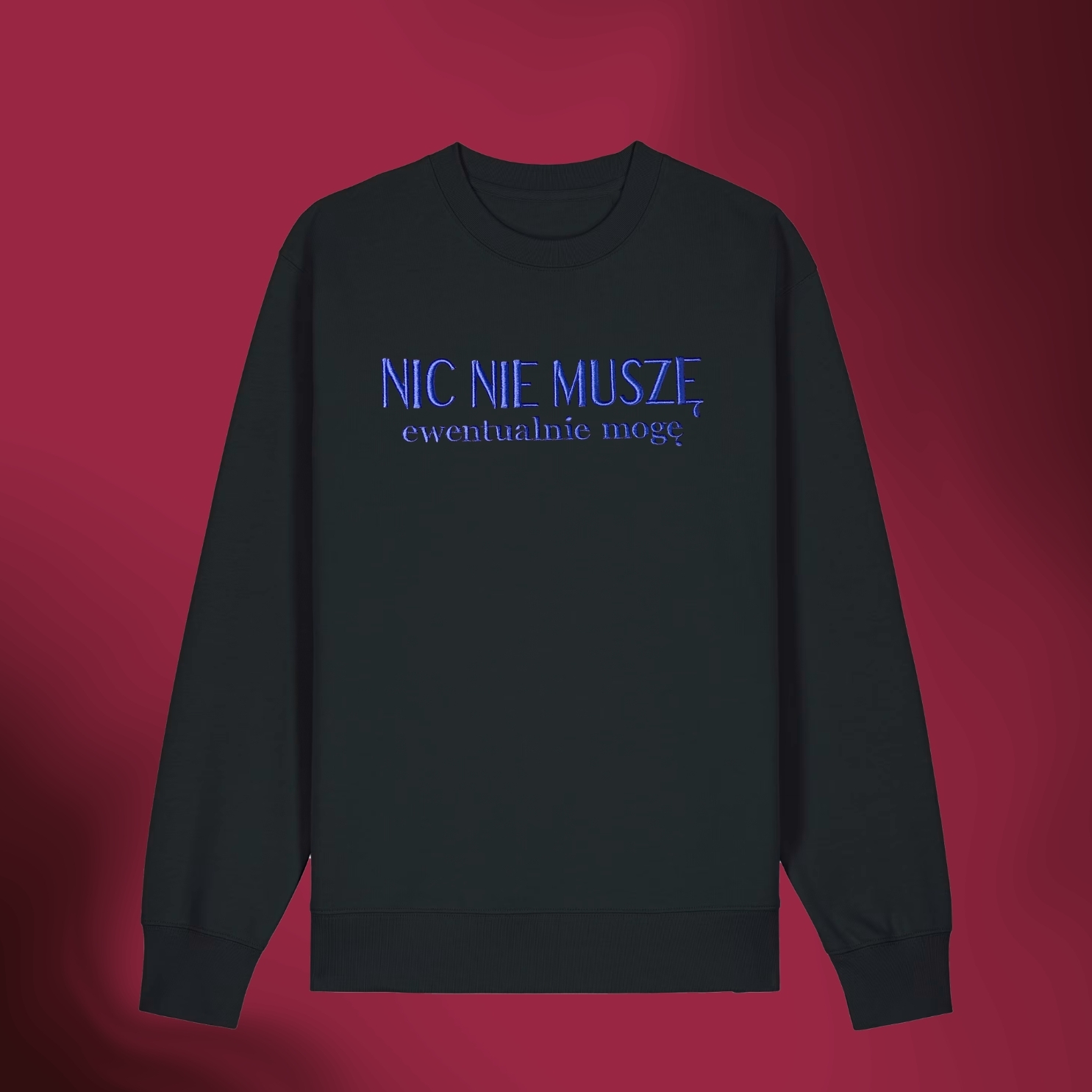 Bluza z haftem 3D „NIC NIE MUSZĘ, ewentualnie mogę” jest idealna na te dni, kiedy nawet „mogę” brzmi podejrzanie optymistycznie.