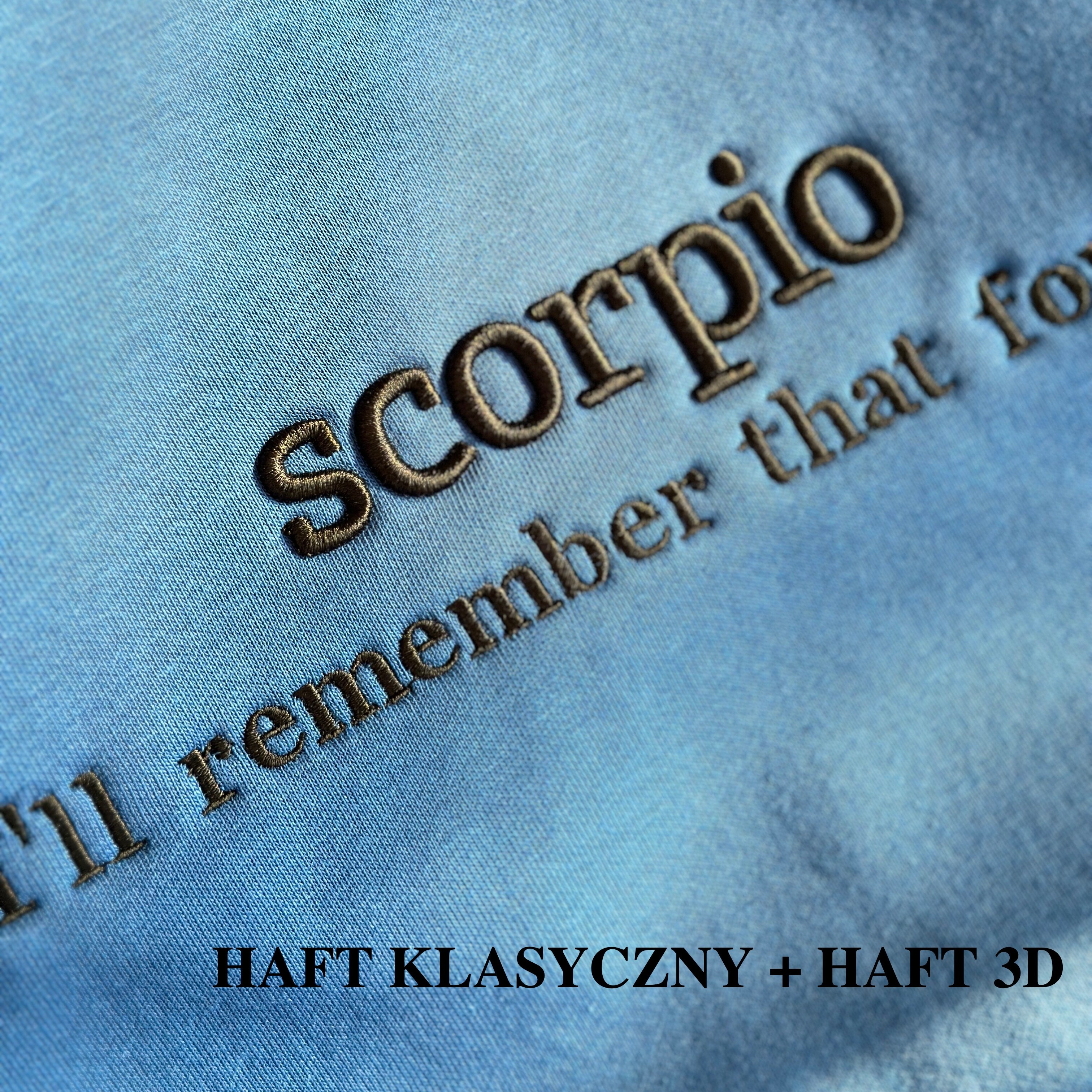 Bluza jest dostępna w dwóch wariantach: całość w hafcie klasycznym lub połączenie haftu klasycznego (napis mniejszą czcionką) z haftem 3D (nazwa znaku zodiaku) - sprawdź w galerii zdjęć.