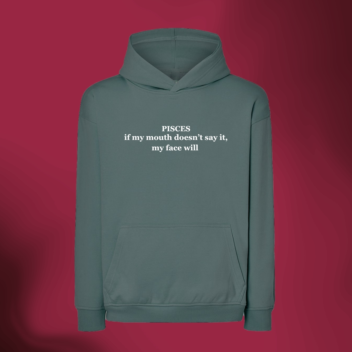 Twarz z napisami? To zdecydowanie stwierdzenie o Rybach. Oryginalna bluza z kapturem o kroju oversize z napisem "Pisces: if my mouth doesn't say it, my face will" idealnie pasuje do wszystkich Ryb, które nie muszą otwierać ust, żeby świat wiedział, co naprawdę myślą.